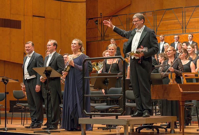 Per il concerto inaugurale vero e proprio, Hans-Cristoph Rademann ha scelto di riproporre il celebre oratorio Die Schöpfung di Haydn, da sempre uno dei pezzi forti nel repertorio dei complessi della Bachakademie. È stato molto interessante confrontare la lettura del direttore sassone con quella del suo predecessore Helmuth Rilling, da me ascoltata per l’ ultima volta circa due anni e mezzo fa. Rademann non rivoluziona le caratteristiche interpretative, piuttosto perfeziona i particolari dell’ esecuzione con la sua formidabile capacità di lavorare sui minimi dettagli strumentali e vocali. Un simile lavoro di cesello sulla parola e sulle dinamiche permetteva di gustare tutta una serie di preziosi particolari, splendidamente messi in risalto da una Gächinger Kantorei al massimo della forma e dai ricercatissimi colori strumentali del Bach Collegium Stuttgart. Fantasia, respiro, libertà nella scelta dei tempi erano le caratteristiche principali di una lettura di altissimo livello, un vero e proprio affresco strumentale e vocale di colori cangianti e raffinati. Hans-Cristoph Rademann si è confermato ulteriormente come un acquisto prezioso per la vita musicale di Stuttgart. Un’ interpretazione che si può definire di riferimento assoluto, nonostante alcune pecche evidenziate dai solisti. La migliore prestazione è stata quella del tenore Daniel Behle, già presente nel cast dell’ ultima esecuzione di Rilling e che ha messo nuovamente in mostra una dizione scolpita e raffinata nella definizione dei recitativi. Autorevole la prova di Rene Pape, anche lui molto espressivo nel fraseggio anche se la voce risente dell’ usura dovuta a una carriera ormai lunga. Annette Dasch, nome di spicco del panorama sopranile internazionale, è apparsa spesso insicura nell’ intonazione e imprecisa nella coloratura, nonostante il bel colore luminoso delle note centrali. Il pubblico della Liederhalle ha tributato un vero e proprio trionfo a tutti gli esecutori.