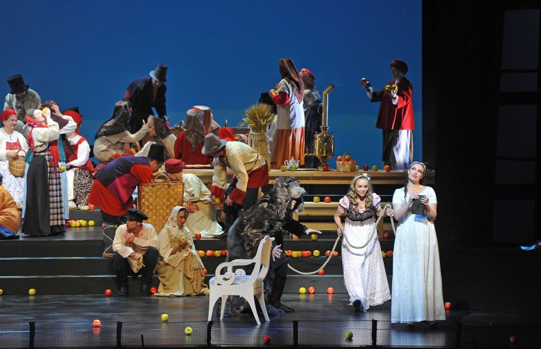 Per quanto riguarda la parte musicale, i complessi del Mariinsky hanno confermato il loro livello di assoluta eccellenza con una stupenda prestazione di orchestra e coro, ma sinceramente mi aspettavo di più dalla direzione. Dopo la fantastica prova nella Pikovaja Dama, l’ interpretazione di Valery Gergiev questa volta mi è sembrata fredda e carente di tensione teatrale in molte scene. In particolare, ho avvertito una certa carenza di slancio e passionalità nella scena della lettera e nel primo quadro del secondo atto. Niente di censurabile, ma non la lettura di riferimento che ci poteva legittimamente attendere da un direttore di altissima classe come Valery Gergiev, che da anni è considerato interprete paradigmatico in questo repertorio. Bisogna però aggiungere che il maestro moscovita è apparso chiaramente impegnato nello sforzo di sostenere prima di tutto un cast che, pur nella sua omogeneità di insieme, non è sembrato all’ altezza delle esigenze richieste dai ruoli principali. Largamente insufficiente il Gremin di Mikhail Petrenko, che ha esibito il solito vocione ingolato, artificialmente scurito e ingestibile tipico in tutti i bassi russi delle ultime generazioni, che anche timbricamente sono indistinguibili l’ uno dall’ altro. Tra gli altri elementi del cast da me ascoltato alla seconda recita, interessante mi è sembrato l’ Onegin di Roman Burdenko, già ascoltato come Tomsky in Pikovaja Dama e dotato di una voce robusta oltre che manovrata con discreta sicurezza. Buona anche la prova del mezzosoprano Yekaterina Sergeieva come Olga, anche lei dotata di un bel colore timbrico e ampiezza sonora. Tra le parti di fianco, prove positive hanno offerto Elena Vitman come Filipevna e Andrei Zorin come Triquet.