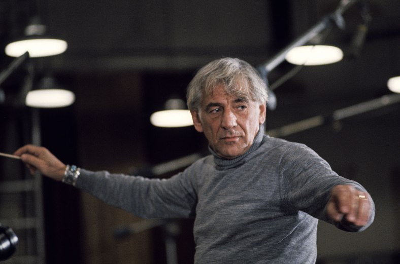 Leonard Bernstein durante una seduta di registrazione, a New York nel 1974. Foto ©Santi Visalli/Getty Images