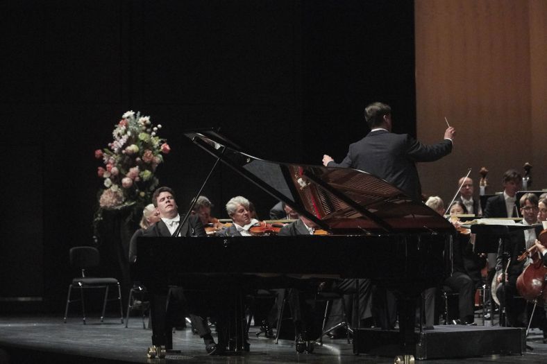 In un Festspielhaus gremito fino all’ ultimo posto, il morbido pianissimo fatto di luce color oro con cui il primo corno Jochen Ubbelhode ha dato inizio all’ Ouverture dell’ Oberon di Weber era la perfetta introduzione all’ atmosfera incantata e fiabesca che Thielemann ha creato in questo brano, reso come mai io avevo ascoltato finora nel suo tono di magica danza di elfi. Con un lavoro di cesello nella definizione delle dinamiche e un fraseggio di squisita eleganza, il direttore berlinese ha offerto una prova stupenda di virtuosismo orchestrale e capacità evocativa da interprete di altissimo livello. Il suono liquido, iridescente degli archi e i colori al pastello della sezione dei legni erano qualcosa che raramente si ha la possibilità di ascoltare in concerto. Con un cambio di passo spettacolare, Thielemann ha poi assecondato alla perfezione il pianismo epico e grandioso di Denis Matsuev nel Concerto N° 2 in la maggiore di Liszt. Il quarantaduenne virtuoso siberiano è un pianista il cui modo di suonare è quello tipico della grande scuola russa: suono potente, fraseggio ampio e qualità tecniche assolutamente formidabili. Quella di Matsuev in Liszt è una concezione interpretativa abbastanza vecchio stile, più spettacolare che intimistica, ma la facilità sbalorditiva con cui il virtuoso di Irkutsk ha risolto tutti i trabocchetti insidiosi e le difficoltà che rendono assai ardua la scrittura pianistica lisztiana hanno reso la sua esecuzione davvero elettrizzante. Superando con facilità irrisoria i grandiosi blocchi di sonorità orchestrale creati da Thielemann, il suono possente del pianoforte di Matsuev si espandeva nella sala del Festspielhaus con un effetto assolutamente avvincente. Lungamente applaudito dal pubblico, Matsuev ha eseguito come fuori programma lo Studio op. 8 N°12 di Skrjabin, autore del quale oggi è considerato fra gli interpreti più autorevoli.