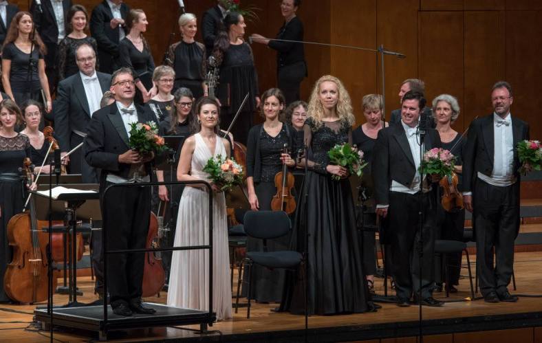 Hans-Cristoph Rademann ha ottenuto dagli strumentisti della Gaechinger Cantorey sonorità omogenee e di bella qualità complessiva, sottolineando molto bene le scansioni ritmiche del secondo movimento e marcando molto bene il passo complessivo dell’ esecuzione, che appariva molto convincente per vitalità di fraseggio e chiarezza nella sottolineatura dei dettagli. Qualche squilibrio sonoro si è avvertito però nell’ Allegretto, in cui il suono delle percussioni tendeva a tratti a sovrastare quello delle altre sezioni strumentali. Probabilmente, ci sarebbe voluto un leggìo in più per ognuna delle cinque sezioni degli archi. In ogni caso, il carattere gagliardo e brioso che caratterizza la composizione è stato evidenziato complessivamente molto bene.