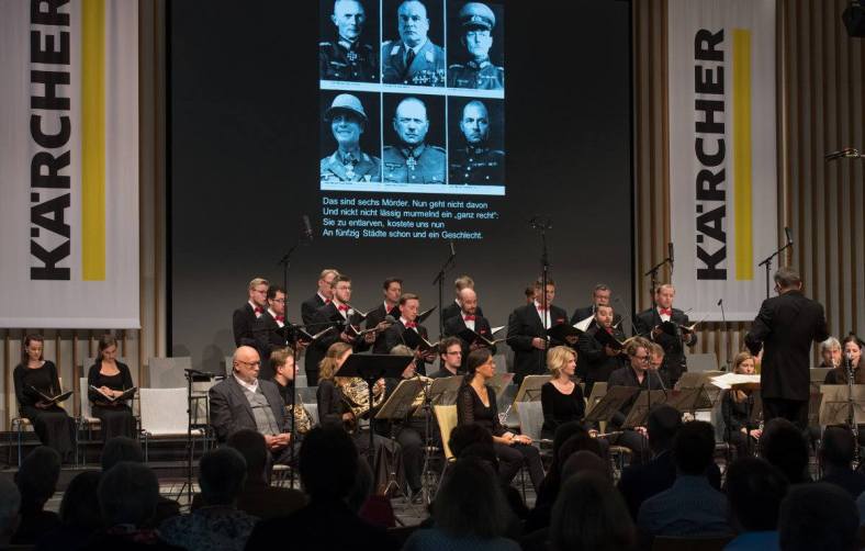Il giorno seguente, il secondo appuntamento ci ha portato fino a Winnenden, cittadina situata a una ventina di chilometri da Stuttgart nella direzione che porta a Schörndorf, poco distante da Waiblingen, in cui hanno sede gli stabilimenti della ditta Alfred Kärcher Gmbh, una tra le più grosse realtà imprenditoriali di questa zona, fondata nel 1935 dall’ omonimo ingegnere nativo di Bad Cannstatt e specializzata nella produzione di macchinari per la pulizia industriale. Il gruppo industriale Kärcher, che è tra i principali sponsors della Musikfest, ha messo a disposizione l’ auditorium sito all’ interno dello stabilimento, una bella sala acusticamente ottima e capace di circa 600 posti, per l’ esibizionedel Dresdner Kammerchor diretto da Hans-Christoph Rademann. Il direttore sassone ha fondato questo gruppo nel 1985 quando era ancora studente e da allora lo ha portato a raggiungere una reputazione internazionale anche tramite un’ intensa attività discografica dedicata in particolare alla musica di Heinrich Schütz, del quale Rademann e il Dresdner Kammerchor hanno recentemente completato la registrazione integrale delle opere corali, accolta da critiche eccellenti e insignita di prestigiosi premi internazionali. Il concerto di Winnenden era impaginato come serata musicale intervallata da letture e per la parte recitante una sostituzione dell’ ultimo momento ci ha permesso di fare conoscenza diretta della straordinaria personalità di Thomas Thieme, sessantanovenne attore originario di Weimar che è considerato tra i miti della scena teatrale tedesca e che io ho ammirato per la straordinaria interpretazione del ministro Bruno Hempf nel film Das Leben der anderen di Florian Henckel von Donnersmarck, uno tra i capolavori del cinema contemporaneo.