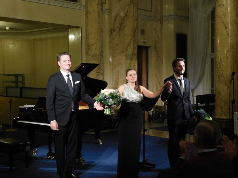 Essendo una coppia anche nella vita reale, i due giovani cantanti hanno voluto presentare per il loro recital un programma basato in massima parte su pagine del Lied romantico dedicate al tema dell’ amore, impaginato con grande raffinatezza in collaborazione con Helmut Deutsch, il celebre pianista che è il loro consigliere artistico e lavora nel repertorio liederistico insieme a quasi tutti i più grandi cantanti degli ultimi decenni. Dal punti di vista della resa vocale, la serata era senza dubbio pregevole. Esther Dierkes ha una bella voce di soprano lirico, omogenea in tutta la gamma e con una buona proiezione. Björn Burger, che come ho già detto ascoltavo qui per la prima volta, è un baritono davvero interessante per il colore timbrico di uno strumento gestito molto bene dal punto di vista tecnico e una musicalità davvero notevole, che gli permette scelte di fraseggio molto personali e rifinite nei dettagli. L’ esecuzione del ciclo An die ferne Geliebte di Beethoven, raccolta critta nell’ aprile del 1816 su testi di Alois Jeitteles, medico e letterato, che costituisce forse il primo esempio assoluto di ciclo liederistico unitario nell’ argomento e nella forma Durchkomponiert in cui i sei brani che la compongono si susseguono in una stretta relazione tonale e senza soluzioni di continuità, era davvero molto personale e caratterizzata da belle intuizioni di fraseggio come il tono trasognato del terzo Lied, “Wo die Berge so blau”.