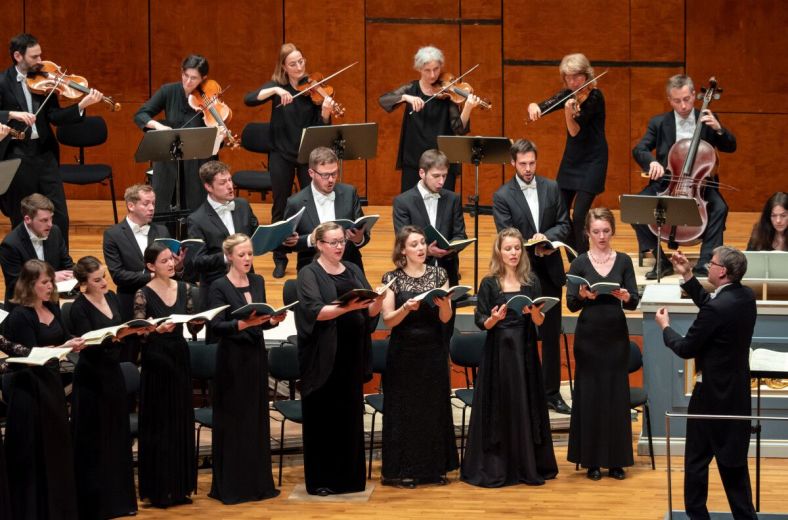 Hans-Chistoph Rademann ha scelto, per questo ultimo Akademiekonzert della stagione alla Liederhalle, l’ esecuzione con il coro accompagnato dalle parti strumentali, scritte da Bach come semplice sostegno del coro e spesso omesse dai direttori che preferiscono la versione a cappella. L’ esecuzione ci ha dimostrato una volta di più che il musicista sassone, da quando ha riorganizzato la Gaechinger Cantorey come complesso basato sui criteri storicamente informati e si trova così alla guida di un ensemble tramite il quale può realizzare pienamente le sue intuizioni musicali, mette in evidenza tutta la sua statura di interprete bachiano tra i maggiori della nostra epoca, per la profonda penetrazione interpretativa, la chiarezza della concertazione e la coerenza perfetta di un fraseggio calcolato nei minimi particolari. Quello di Rademann è un Bach vivo, vibrante ed espressivamente intenso senza mai perdere di vista la perfetta consapevolezza stilistica. Come sempre nelle esecuzioni bachiane del direttore sassone, eccezionale è stato il lavoro sull’ articolazione del testo. Nelle esecuzioni di Rademann alla guida della nuova Gaechinger Cantorey, uno degli aspetti più attraenti per l’ ascoltatore è proprio quello di poter capire con assoluta chiarezza tutti i minimi dettagli della parola cantata. Rademann sfrutta le possibilità offertegli dai suoi complessi per compiere un vero e proprio lavoro di cesello sulle sfumature testuali che vengono sbalzate con una chiarezza e una evidenza assolute. La commossa intensità espressiva che ne scaturisce non manca mai di lasciare una profonda impressione al pubblico, che anche in questo caso ha seguito tutto il concerto con una concentrazione assoluta e alla fine ha applaudito a lungo Rademann e tutti gli esecutori.