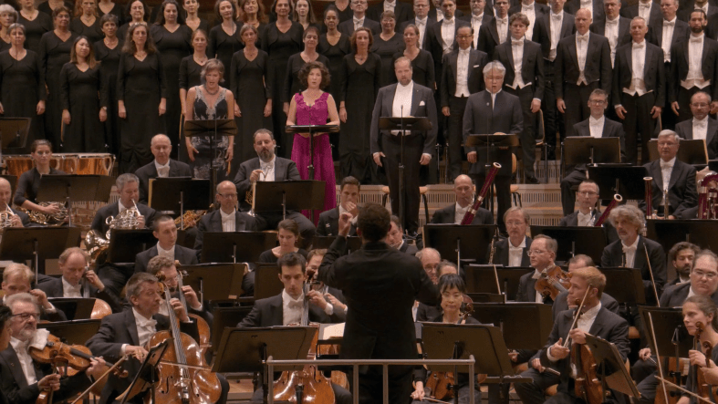Dopo la pausa, Kirill Petrenko e i Berliner Philharmoniker hanno dato un’ ulteriore dimostrazione della loro intesa già notevolissima in una lettura della Nona Sinfonia di Beethoven che si può senza alcun dubbio inserire fra le massime degli ultimi anni. I dettagli della trasmissione in video permettevano di studiare a fondo la mimica di Petrenko che dirige con tutto il corpo, non controlla l’ orchestra in modo ossessivo ma spesso si limita a marcare i tempi forti delle battute e in qualche caso smette addirittura di dirigere per un attimo, quasi lasciandosi trasportare dalla musica. La sua concezione dell’ ultimo capolavoro sinfonico di Beethoven è quella di un musicista che, accanto alla tradizione classica, ha studiato a fondo la lezione di Nikolaus Harnoncourt e di altri direttori dell’ epoca più recente come David Zinman e Claudio Abbado, fautori di una concezione del suono beethoveniano più trasparente, asciutta e affilata. Partendo da queste basi, Petrenko imposta una lettura di tensione drammatica a tratti assolutamente straordinaria. Il primo tempo suonava incredibilmente intenso nella sua lacerante, potentissima tragicità espressa tramite un’ agogica piuttosto stretta e un fraseggio vibrante di tensione. Nello Scherzo, la lettura di Petrenko spaziava dai toni aspri e taglienti, quasi di danza macabra punteggiata dai colpi secchi del timpano fino alla tenera fluidità della linea melodica esposta dai violoncelli nel Trio. Con l’ Adagio, il suono orchestrale dei Berliner si caricava progressivamente di luminosità quasi a esprimere una vera e propria ansia di purificazione, splendidamente sottolineata dalla accuratissima gestione delle linee melodiche operata da Petrenko, che calcolava in maniera millimetrica la progressione con una mimica direttoriale fatta di sfumature infinitesimali, senza mai risultare artificioso.