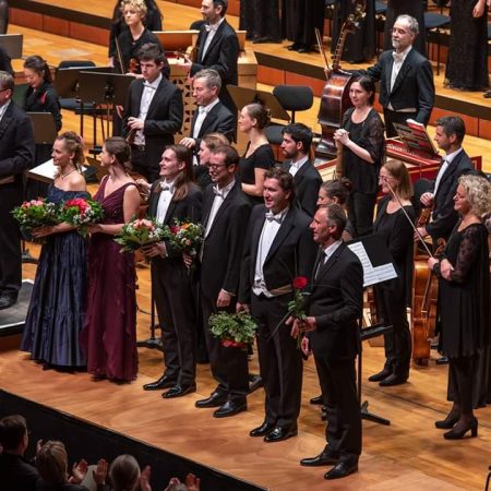 Come intermezzi fra i brani corali, gli strumentisti della Gaechinger Cantorey hanno eseguito il celebre Concerto Grosso in sol minore op. 6 N°8 fatto per la Notte di Natale di Arcangelo Corelli e il Concerto a Cinque in fa maggiore op.1 N°8 di Pietro Locatelli con perfetta proprietà stilistica e bellezza di suono sotto la guida di Nadja Zwiener, la violinista nativa di Erfurt che per diversi anni ha lavorato col celebre ensemble The English Concert di Trevor Pinnock e che Rademann ha espressamente voluto come Konzertmeisterin dei nuovi complessi della Bachakademie riorganizzati per l’ esecuzione secondo i criteri della prassi concertistica storicamente informata. L’ altra composizione corale vivaldiana presente nel programma era il Beatus Vir in do maggiore RV 597, una cantata da chiesa per soli, doppio coro e doppia orchestra con i primi due versi del Salmo III espressi in cantus firmus su una melodia che rimane immutata, mentre altri motivi si intrecciano sopra e sotto di essa, ritornano poi nel corso del brano come antifona. Tra le composizioni sacre di Vivaldi, questa in modo particolare rivela influenze stilistiche provenienti dalla grande tradizione della Cappella Marciana negli anni di Gabrieli e Monteverdi oltre a una padronanza e fantasia nell’ uso del contrappunto che fanno di questo lavoro uno tra i più completi in tutta la produzione sacra di Vivaldi. Anche in questo brano, Hans-Cristoph Rademann ha offerto una prova ammirevole per lucidità di analisi, scrupoloso equilibrio di concertazione e per la capacità di scavo minuzioso delle sfumature testuali con cui ha guidato i complessi della Gaechinger Cantorey. Di ottimo livello anche la prova del quartetto dei solisti, in cui alla Richter e alla Harvey si univano in questo pezzo le voci maschili del tenore islandese Benedikt Kristjánsson, che ha impressionato per la luminosità di un timbro vocale davvero attraente e supportato da una buona impostazione tecnica, e del trentaseienne basso croato Krešimir Stražanac, cantante che collabora spesso con la Bachakademie ed è uscito dalla scuola di Dunja Vejzovic alla Musikhochschule Stuttgart, dotato di una bella pastosità e risonanza di suono in tutta la gamma vocale. Successo vivissimo per questa serata prenatalizia di musica affascinante e coinvolgente, in una Liederhalle piena in ogni ordine di posti.