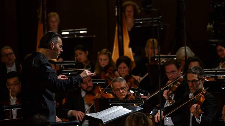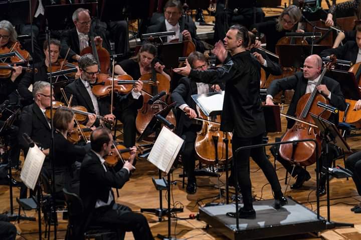 Questa sorta di sospensione spazio- temporale fra passato e futuro era realizzata nella lettura di Currentzis con assoluta lucidità di penetrazione espressiva. Il capolavoro estremo del compositore boemo è infatti una sintesi suprema della sua vicenda artistica, uno sguardo al futuro realizzato con una fantastica retrospettiva sulla storia passata del sinfonismo classico. Come nella Patetica di Tschaikowsky, altro capolavoro realizzato alle soglie della morte, la struttura è impostata con un Adagio finale e il nucleo centrale comprendente due Allegri, in questo caso uno Scherzo e un Rondò. Il direttore greco-russo attacca l’ Andante comodo con un tempo indugiante, sviluppato poi in maniera ritmicamente molto flessibile. Un colore orchestrale malinconico, quasi di luce crepuscolare sottolinea la delicatezza struggente delle linee melodiche punteggiata a tratti da dissonanze evidenziate in maniera tale da sembrare veri e propri scoppi di disperazione. Il tutto si svolge in un clima sonoro fatto principalmente di somma delicatezza e tinte strumentali morbide, sfumate che la SWR Symphonieorchester ha realizzato con una perfezione tecnica davvero da complesso di livello superiore. Con Currentzis sul podio, il carisma del direttore è di una forza tale da spingere gli sttrumentisti a dare il massimo delle loro possibilità e i risultati sono assolutamente stupendi. Come sempre nei concerti di questa orchestra, una menzione particolare va fatta a proposito della sezione archi, di una pasta sonora e omogeneità di cavata che hanno pochissimi eguali oggi nelle formazioni sinfoniche europee. Le ultime battute del primo tempo, con un timbro orchestrale che sembrava quasi evocare un clima di dolorosa e stupefatta rassegnazione, erano assolutamente di una perfezione e di una bellezza. che io poche volte ho udito nelle tante esecuzioni di questa Sinfonia ascoltate nel corso delle mie esperienze concertistiche. Nel blocco centrale dei due movimenti in tempo mosso, il fraseggio di Currentzis si carica progressivamente di un teso, quasi parossistico furore espresivo. Il Ländler dello Scherzo è affrontato in maniera tragicamente sarcastica, quasi come uno spettrale gioco di marionette in cui i legni della SWR Symphonieorchester davano il massimo rilievo agli incisi tragicamente sarcastici che punteggiano la melodia, interrotto solo dalla breve serenità del Trio. Nel Rondò-Burleske la tragicità tocca i massimi vertici. Con un furore quasi espressionista, Curretzis carica progressivamente le sonorità e i ritmi fino ad esplodere letteralmente in una chiusa parossistica, quasi selvaggia in cui l’ orchestra ha compiuto un vero e proprio capolavoro di virtuosismo tecnico.