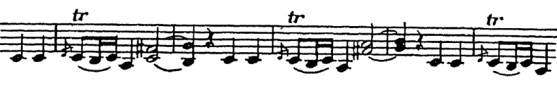 Here, the two semiquavers are often abbreviated into mere grace-notes of the preceding trill. One often hears the same mistake in the finale of the G major Concerto. The development begins with this closing-theme, modulates boldly into D major, and introduces a stretto on the two final crotchets of the opening motif. An old and experienced musician thought that the sforzandos before the recapitulation (bars 155 ff.) really pertain to the second quaver,the accent on the first quaver being self-evident, and it being characteristic of Beethoven to strengthen weakunits of the bar. However, one could also maintain that the sfs, as printed, signify a strengthening of the weak second and fourth beats 5 for without them one might easily accent the first and third. Though our modern pianos would enable us to double the octaves at the endof the first and second section we should refrain from doing so, since octave-doubling often makes for a rough, grumbling tone. The coda, introduced by a cadenza which begins in A flat major, brings the movement to a brilliant finish. The fortissimo chords 9 to 7 bars from the end should be divided for the greater comfort of small hands.