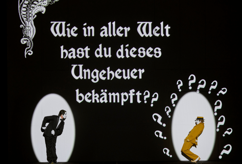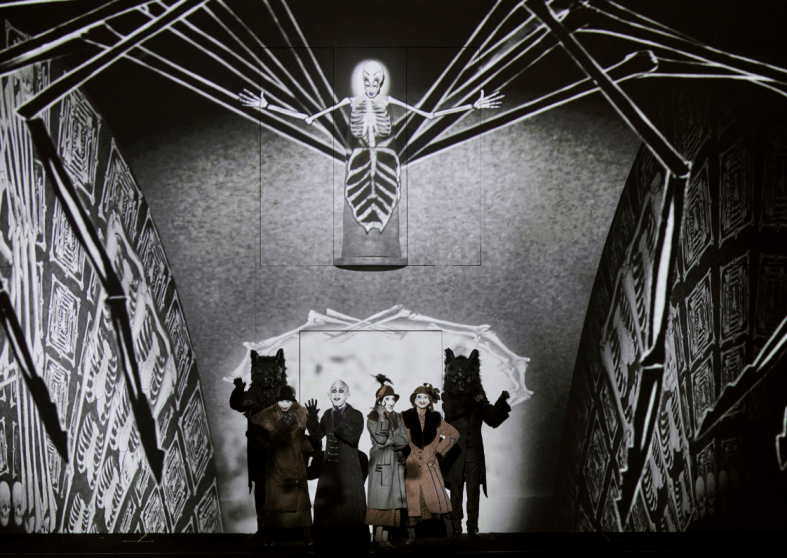 Dopo quasi sette mesi, la Staatsoper Stuttgart ha finalmente ospitato di nuovo una rappresentazione d’ opera riprendendo da dove il discorso si era interrotto, ossia nel segno di Mozart. L’ ultima recita operistica andata in scena prima della chiusura dovuta alla pandemia era stata infatti una recita de Le Nozze di Figaro e come primo spettacolo di questa stagione autunnale i 340 spettatori che sono riusciti a procurarsi un posto hanno potuto assistere a Die Zauberflöte, nella produzione allestita originariamente per la Komische Oper Berlin nel 2012 da Barrie Kosky e dal gruppo inglese 1927, specializzato in film d’ animazione. Uno spettacolo molto particolare già nella sua impostazione, qui ulteriormente rielaborata da Suzanne Andrade per adattarla ai criteri di sicurezza imposti dalle norme di distanziamento sociale attualmente vigenti. In pratica, l’ azione scenica era affidata esclusivamente a un gruppo di attori che si muovevano su uno sfondo costituito da un cartone animato, in cui si alternavano continuamente immagini e colori a tratti richiamanti il cinema surrealista degli anni Venti. In pratica il pubblico in sala assisteva a una specie di film muto, con i cantanti che eseguivano le loro parti stando nei palchi di proscenio e i dialoghi parlati che venivano completamente omessi. Molto carine, in questo contesto, erano le caratterizzazioni di Papageno e Monostatos, quest’ ultimo vestito come il protagonista del celebre film muto espressionista Nosferatu – Eine Symphonie des Grauens di Friedrich Wilhelm Murnau. Ma tutto lo spettacolo si lasciava guardare con piacere per l’ abilità tecnica della realizzazione e la bravura davvero funambolica degli attori, tra cui meritano di essere nominati almeno Martina Borroni (Pamina), Michael Fernandez (Papageno), Sebastian Petrascu (Monostatos), Martin Tyszko (Sarastro) e Lorenzo Soragni (Tamino), che doppiavano i ruoli dei protagonisti principali.