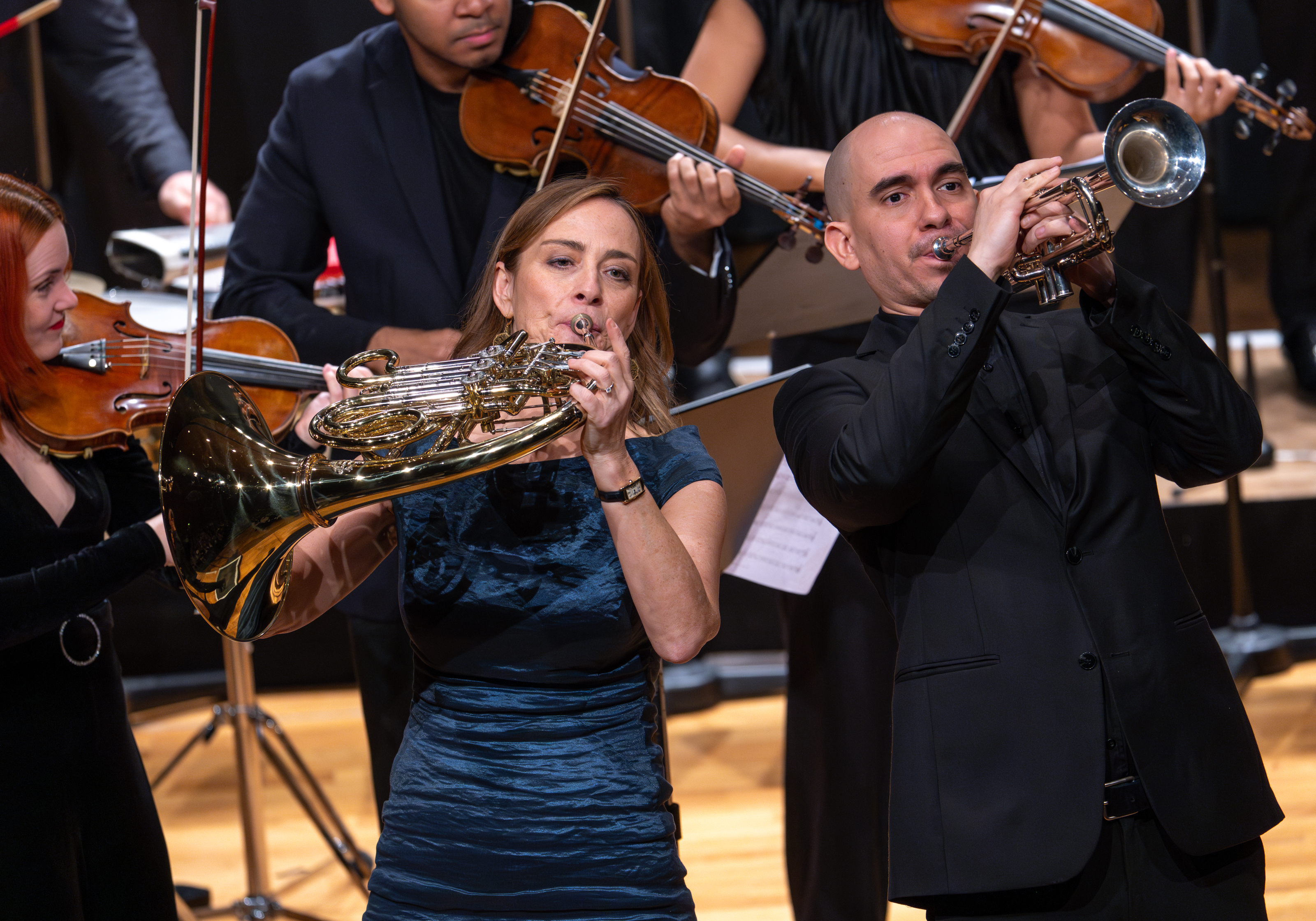 Sarah Willis, musicista nata negli USA e cresciuta fra Tokyo, Boston, Mosca e Londra che dal 2001 fa parte della sezione dei corni dei Berliner Philharmoniker, svolge anche un’ intensa attività mediatica realizzando programmi educativi e interviste per la Digital Concert Hall, trasmissioni radiofoniche per diverse emittenti tedesche e streaming dedicato al suo strumento come la serie Horn Hangouts, diffusa tramite il suo sito web e il suo canale YouTube. Sfruttando la sua passione per la musica latina che la accompagna sin da quando era ragazza e che l’ ha portata anche a studiare professionalmente le danze sudamericane, Sarah Willis per il suo progetto più recente ha realizzato un programma dedicato a un accostamento fra Mozart e la musica cubana, che ha già eseguito in diverse città sempre con grande successo e presentato alla Liederhalle per la penultima serata della Bachfest. All’ ascolto si è trattato di una serata davvero divertente, ricca di brio e di virtuosismi spettacolari come i duetti tra la Willis e il trombettista jazz cubano Harold Madrigal, membro di complessi prestigiosi come il Buena Vista Social Club e la Orquesta Akokán, celebre complesso di mambo, insieme al quale si è prodotta in un vertiginoso scambio di acrobazie strumentali durante una versione del Terzo Brandeburghese di Bach rielaborata da Edgar Olivero. Nella parte classica del programma, Sarah Willis ha dato un bel saggio della sua classe strumentale nel Concerto K: 447 di Mozart eseguito in maniera assolutamente da manuale, e l’ Havana Lyceum Orchestra ha proposto una bella lettura, molto elegante e fraseggiata con spirito, della Serenata Notturna K. 239 e di due Fughe a cinque parti di Bach rielaborate da Mozart. Nel complesso un concerto insolito, originale e davvero interessante, che ha portato all’ entusiasmo il pubblico della Liederhalle unitosi a danzare insieme agli strumentisti durante i fuori programma.