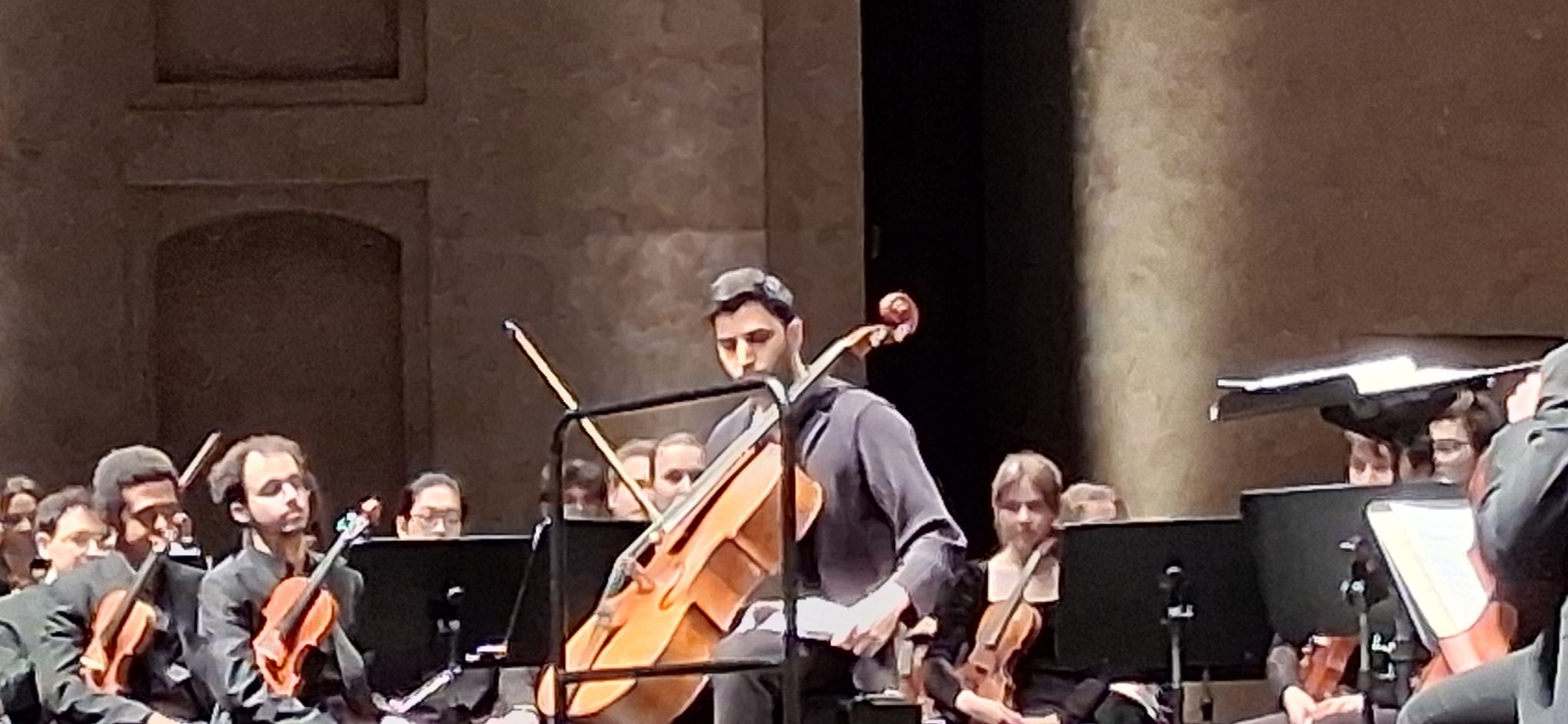 Sotto la direzione di Roderick Cox, trentasettenne statunitense che sta percorrendo una brillante carriera internazionale e da questa stagione ha assunto la carica di direttore musicale dell’ Opéra Orchestre National Montpellier, la Junge Deutsche Philharmonie ha presentato al pubblico il primo dei due programmi portati in tournée quest’ anno. Come solista è stato invitato Kian Soltani, trentaduenne violoncellista austriaco nato a Bregenz da genitori persiani che dopo una serie di affermazioni in concorsi prestigiosi si è imposto all’ attenzione internazionale come uno tra i musicisti più dotati della giovane generazione e sta percorrend una carriera di prestigio con inviti da tutte le grandi orchestre mondiali, documentata da quattro album registrati per la Deutsche Grammophon che hanno ottenuto grande successo di critica e di vendite. Come ho già avuto modo di scrivere in diverse occasioni, oggi siamo in presenza di una generazione di giovani strumentisti di alto livello qualitativo, assolutamente impeccabili dal punto di vista della preparazione tecnica. Un panorama vasto e di primissima qualità, nel quale è diventato difficile emergere perchè il livello medio si è alzato di parecchio. Anche Kian Soltani, che suona lo splendido violoncello Stradivari The London, ex Boccherini del 1694, possiede senza dubbio qualità virtuosistiche di alta classe. Il suono è chiaro, morbido, di timbro quasi tenorile, ben controllato in tutta la gamma dinamica e la capacità di far cantare lo strumento è senza dubbio molto notevole. Oltre allla tecnica strumentale impeccabile anche la musicalità, il senso del fraseggio e dello scambio di tinte e respiri con l’ orchestra sono da musicista già in possesso di una sua cifra personale. la sua interpretazione del Concerto op. 104 di Dvořák era senza dubbio molto notevole per la personalità e il tono ispirato del fraseggio, la splendida tornitura delle linee melodiche e la raffinatezza ricercata nella realizzazione delle dinamiche. Un’ esecuzione davvero molto autorevole, soprattutto in considerazione dell’ età ancora giovane dell’ artista Come fuori programma, Kian Soltani ha eseguito una sua trascrizione per cello e archi bassi del Lied Kéž duch můj sám op. 80 N° 1 la cui melodia è quella impiegata da Dvořák nel Concerto per violoncello e che il musicista inserì nella partitura in memoria di Josefina Kounicová, la sorella della moglie Anna, di cui era innamorato da ragazzo e che morì nel 1895 mentre il compositore stava scrivendo il Concerto.