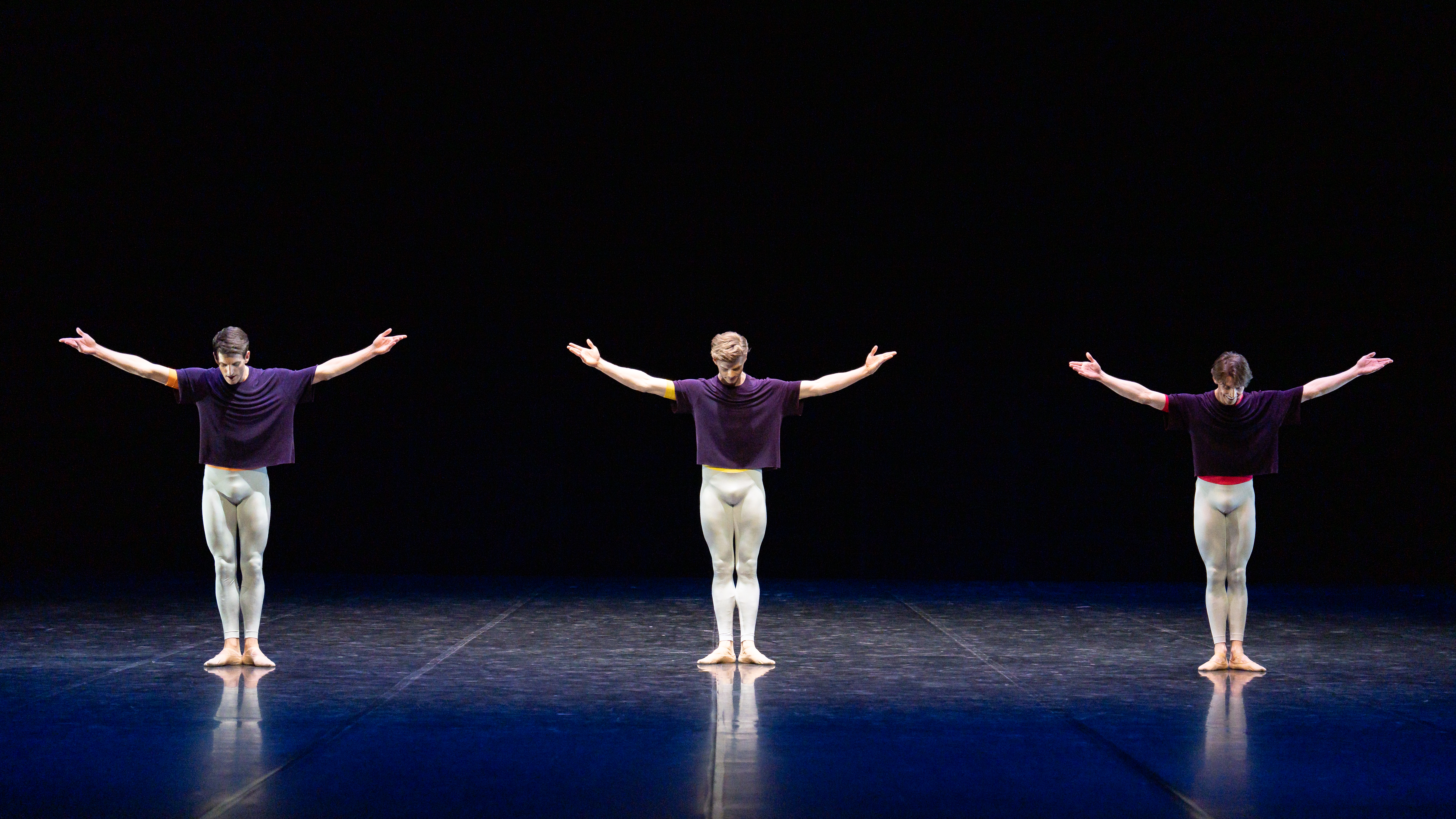 Il quarto pezzo era Solo, ideato nel 1997, una delle coreografie di Hans van Manen più eseguite nel corso degli anni, che anche in questa occasione si rivela ancora una volta un gioiello piacevolmente equilibrato nella sua atmosfera per lo più riflessiva, freddamente elegante, ma anche occasionalmente impertinente. La musica della Corrente dalla Partita per violino solo in si minore BWV 1002 di Bach, con il suo ritmo vorticoso, viene coreografata da Van Manen come uno scambio di numeri visrtuosistici fra tre ballerini, che non lascia nulla a desiderare in termini di agilità e buon umore. Il radioso Matteo Miccini, l’ affascinante e allegro Henrik Erikson e il leggermente provocante Fabio Adorisio formano un trio ideale in termini di spettacolarità e bravura tecnica.