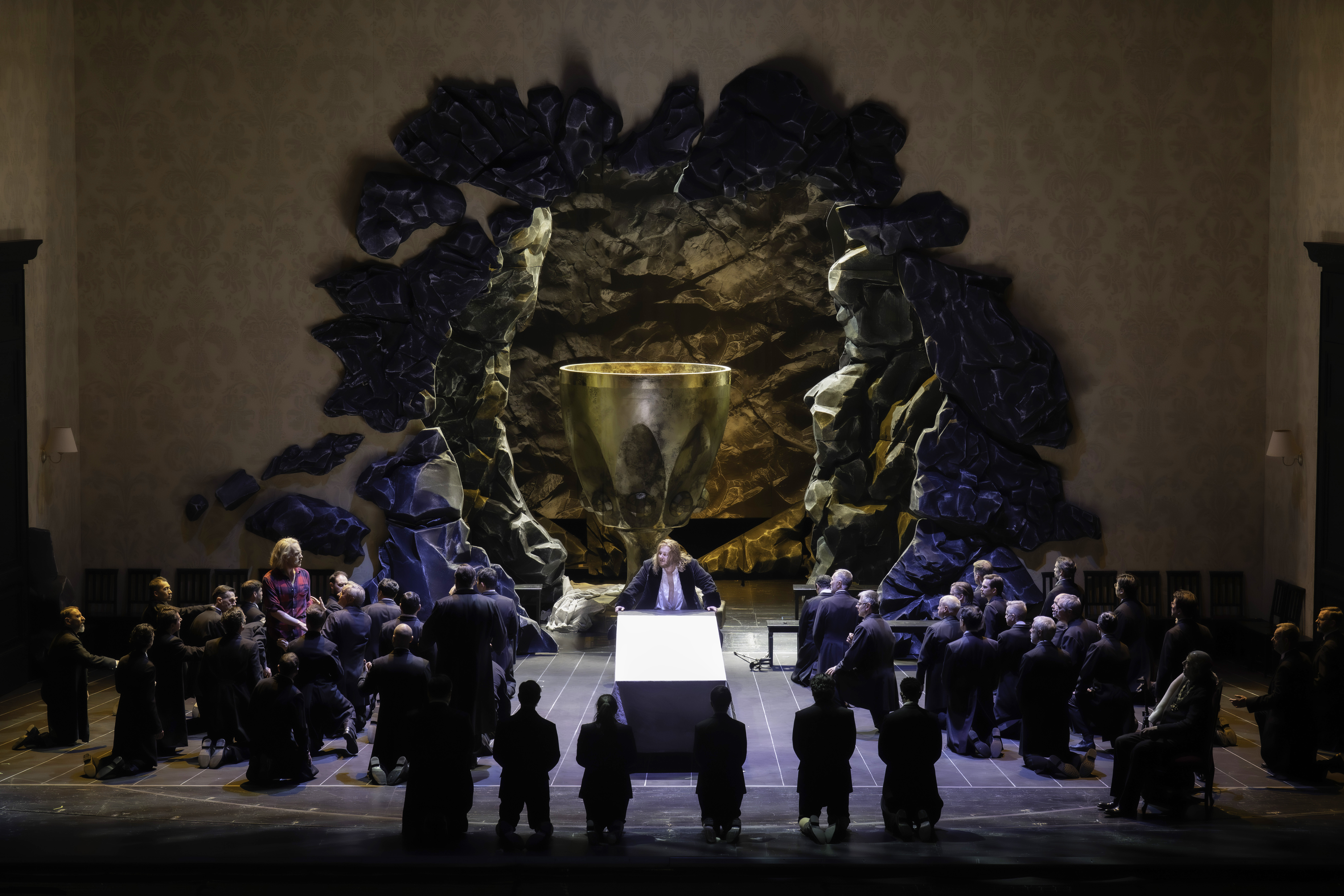 Die Sängerinnen und Sänger, szenisch und musikalisch souverän geführt, boten eine Gesamtleistung auf wahrhaft hohem Niveau. Herausragend war vor allem der beeindruckende Gurnemanz des Basses Andreas Bauer Kanabas, gebürtig aus Jena und seit zwölf Jahren Ensemblemitglied der Oper Frankfurt. Wie kaum ein anderer meisterte er diese lange und schwierige Partie mit stimmlicher Autorität, plastischer Deklamation und einer bis ins kleinste Detail sorgfältig ausgearbeiteten Phrasierung. Eine Interpretation, die zweifellos mit der von Künstlern wie René Pape und Georg Zeppenfeld, den heute anerkanntesten Interpreten dieser Partie, vergleichbar ist. Auch Kundrys Darstellung der 47-jährigen amerikanischen Mezzosopranistin Jennifer Holloway war hervorragend mit einer resonanten Stimme, die über den gesamten Stimmumfang hinweg perfekt homogen war. Der 36-jährige Bassbariton Nicholas Brownlee, den ich in überzeugenden Interpretationen von Hans Sachs in Frankfurt und von Wotan und Holländer an der Bayerischen Staatsoper gehört hatte, porträtierte einen von Schmerz und Reue geplagten Amfortas mit einer Phrasierung von großer Intensität und ausdrucksstarker Reife. Der amerikanische Tenor Ian Koziara, der den Protagonisten spielte, hat eine Stimme von leicht wolkiger Farbe, aber sonor im hohen Register, und er skizzierte die fortschreitende psychologische Entwicklung der Figur mit ausreichender Sicherheit und interpretatorischer Persönlichkeit. Sehr gut war auch der Klingsor des Baritons Simon Bailey, der im letzten Moment für einen erkrankten Kollegen eingesprungen war, und auch die Leistung aller Interpreten der Nebenrollen war tadellos. Das Publikum applaudierte allen Darstellern einer wirklich hochwertigen Aufführung lange und herzlich.