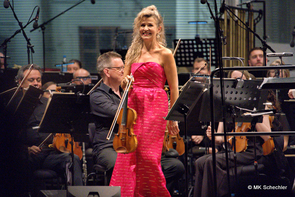 Da tempo Anne-Sophie Mutter si è guadagnata una solida fama come interprete del repertorio contemporaneo, avendo suonato le prime esecuzioni assolute di trentuno brani appositamente scritti per lei da quasi tutti i più grandi compositori della nostra epoca come Lutosławski, Penderecki, Wolfgang Rihm, Henri Dutilleux, Sebastian Currie, Sofia Gubaidulina, Thomas Adès e Jörg Widmann. Il Concerto di John Williams, che oltre alle colonne sonore cinematografiche ha scritto anche più di sessanta brani sinfonici e strumentali di vario genere, è una partitura sgargiante, scritta in un linguaggio polistilistico dove si nota la presenza insistita di elementi ritmici e melodici provenienti dal jazz e con la parte del violino solista scritta in uno stile marcatamente virtuosistico che esplora tutte le possibilità tecniche dello strumento. La Mutter, essendo la dedicataria del pezzo, lo conosce meglio di chiunque altro e la sua esecuzione è stata ispiratissima e assolutamente travolgente, con i passaggi di carattere marcatamente improvvisativo resi con un’ eleganza suprema, assoluta perfezione tecnica e una carica espressiva avvincente. Dopo la pausa, la serata proseguiva con una serie di brani tratti dai film più famosi per cui John Williams ha scritto le colonne sonore come i cicli di Indiana Jones e Harry Potter, ET, la melanconica trenodia Nice to be around da Cinderella Liberty, The Adventures of Tintin, rielaborati appositamente per Anne-Sophie Mutter. Il pubblico si è lasciato incantare da queste melodie che insieme ai film da cui provengono sono entrare a far parte dell’ immaginario collettivo, stupendamente eseguite dalla Mutter che ha suonato per più di mezz’ ora senza risparmiarsi e alla fine ha anche aggiunto al programma una struggente, intensissima esecuzione del tema principale dalla colonna sonora scritta per il film Schindler’s List che la grande artista ha voluto dedicare a tutti i bambini vittime delle guerre. Il concerto si è poi concluso in maniera altamente spettacolare con il celebre tema di Star Wars assai ben diretto da Lina Gonzàlez Granados che in tutta la serata ha messo in mostra sicurezza tecnica e grande energia alla guida della Royal Philharmonic orchestra che ha messo in mostra il suono compatto, omogeneo e affilato negli attacchi, tipico dei complessi britannici,. Trionfo finale, con parecchi minuti di applausi, per una serata davvero piacevole e allo stesso tempo di alta qualità artistica.