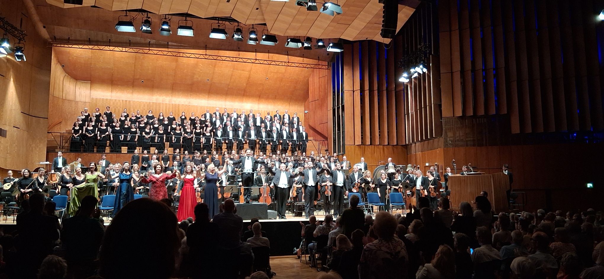 Ascoltare in concerto l’ Ottava Sinfonia di Mahler è un evento anche oggi non frequentissimo. A me personalmente era accaduto finora solo due volte, la prima a Venezia nel 1983, nella Chiesa di SS. Giovanni e Paolo, con Eliahu Inbal che in quegli anni eseguiva l’ integrale sinfonica mahleriana con i complessi della Fenice e la seconda al Gewandhaus Leipzig, diretta da Riccardo Chailly, circa una quindicina di anni fa. La terzultima composizione del musicista boemo non ha mai goduto di grande fortuna esecutiva, per le obiettive difficoltà causate dall’ imponente organico strumentale e vocale previsto dalla partitura e anche per l’ atteggiamento sprezzante degli studiosi che da sempre la considerano retorica, prolissa e di scarsa ispirazione. Devo dire che sin dai miei primi approcci con la musica di Mahler, ai tempi in cui ero ancora uno studente di liceo, mi sono sempre trovato in profondo disaccordo con tali giudizi e ho sempre amato l’ Ottava per la sua grandiosità e l’ ispirazione di melodie trascinanti delle quali è ricca la partitura, che nel suo gigantismo strutturale deve assere accostata a lavori coevi come il Prométhée di Skrjabin e i Gurre-Lieder di Schönberg nei quali lo smisurato organico non è impiegato solo come forza d’ urto ma molto più spesso per moltiplicare le possibilità di effetti coloristici inusuali. Del resto, anche i più severi critici della composizione riconoscono la presenza di momenti davvero toccanti e raffinatissimi come l’ introduzione strumenale alla seconda parte e il coro finale, una stupenda apoteosi che ogni mahleriano convinto dovrebbe portarsi nel cuore.