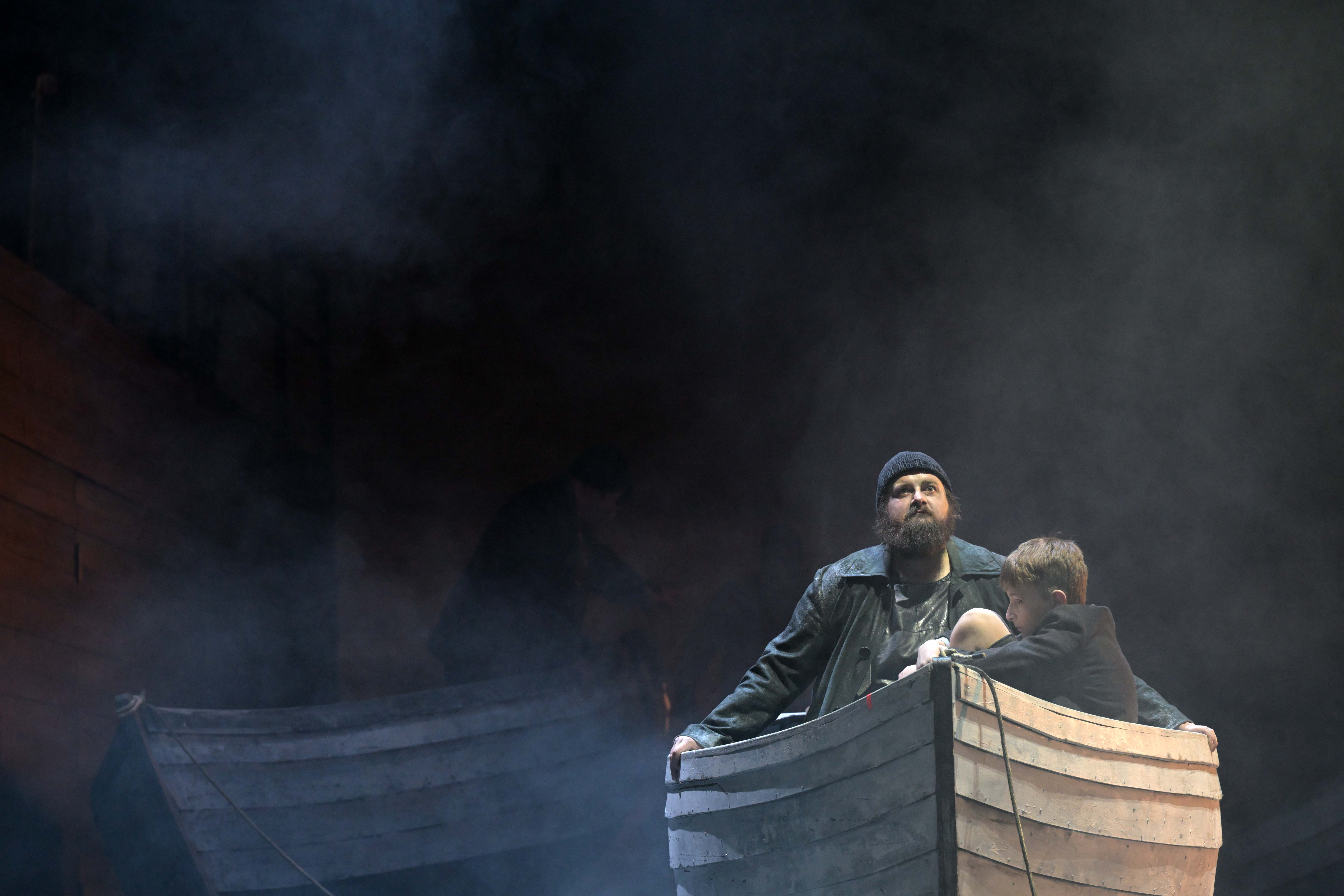 Zu den Wiederaufnahmen, die die neue Saison der Oper Frankfurt eröffnen, gehört derzeit die schöne Inszenierung von Peter Grimes, die im 2017 von Keith Warner konzipiert wurde, einem englischen Regisseur, der vor allem für seine Wagner-Inszenierungen bekannt ist, die auch in Bayreuth aufgeführt wurden. Warners perfekt ausgeführte Regie setzt auf ein Bühnenbild mit wenigen, spärlichen Elementen, wobei der Chor im Stil griechischer Tragödien oft bewegungslos im Hintergrund positioniert ist, auf eine sorgfältig kalkulierte und wirkungsvolle Beleuchtung sowie einen zurückhaltenden und gelassenen Schauspielstil. Die Inszenierung folgt getreu den dramatischen Situationen und der Atmosphäre von Montagu Slaters Stück, das von Britten vertont wurde und das sich auch acht Jahre nach seinen Uraufführungen immer noch als absolut aktuell erweist und seine volle Gültigkeit besitzt. Die Atmosphäre des Fischerdorfes ist klar definiert in ihrer Strenge und ihrem Misstrauen gegenüber allem, was fremd oder neu erscheint, während die Kostüme dazu beitragen, das Geschehen in eine sehr klare und präzise Realität zu fassen.