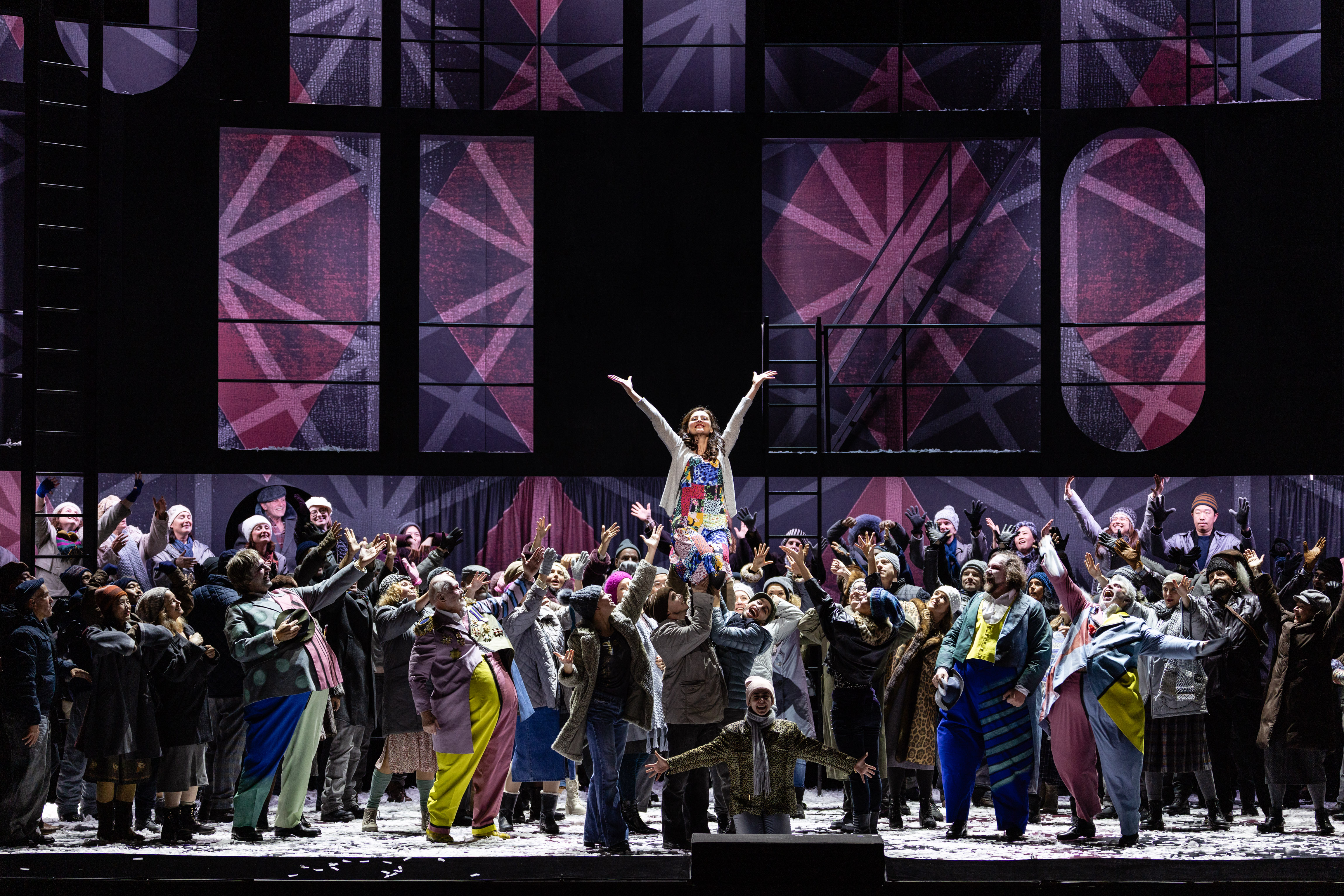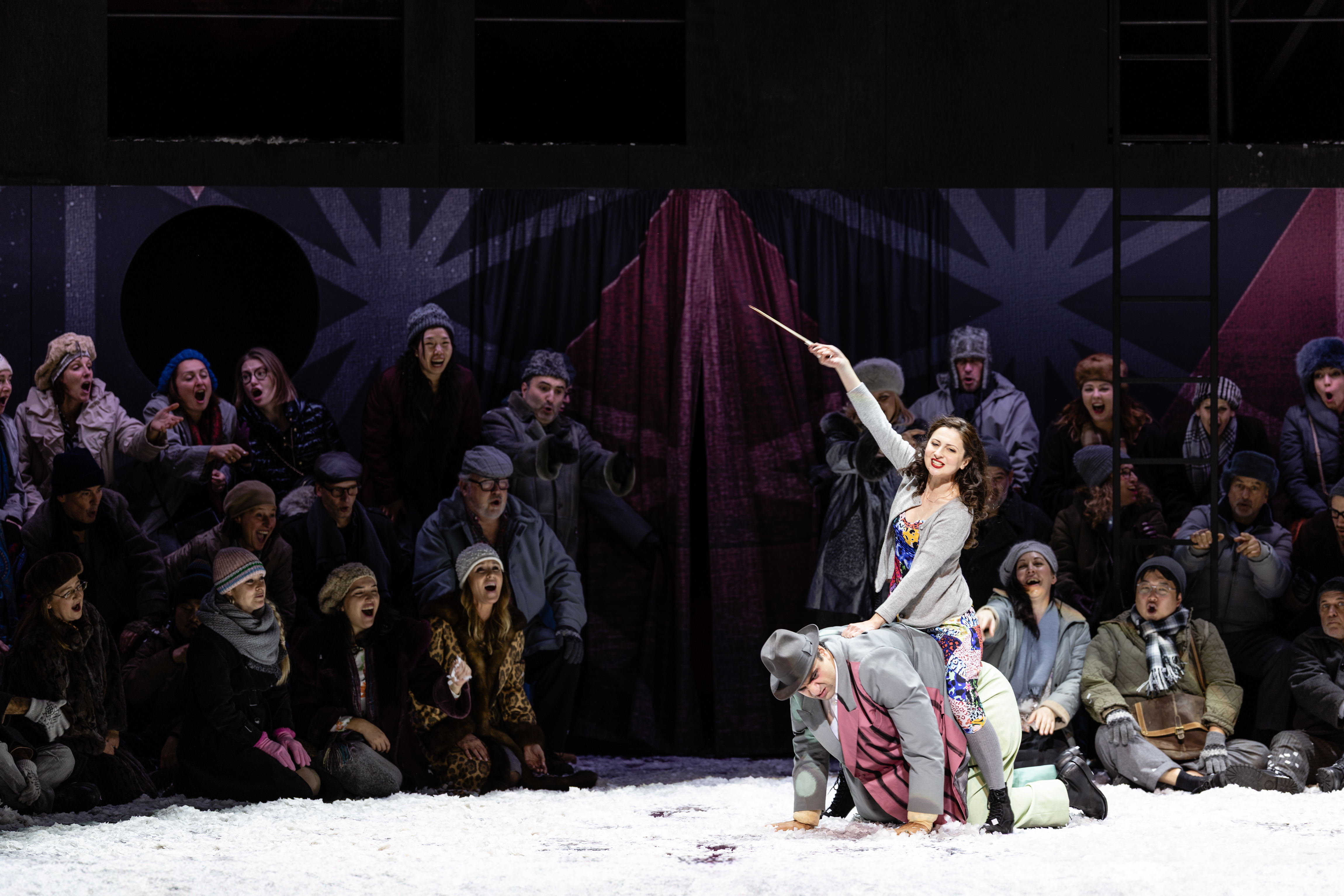 Die Bayerische Staatsoper betraute Barrie Kosky mit der Inszenierung – eine goldrichtige Wahl. Kosky ist ein Regisseur, der in seinen Produktionen stets eine lebhafte Fantasie beweist, und mit einer Partitur dieser Art konnte er seine Kreativität vollends entfalten. Ausgehend von der Idee, dass ein Chor den Dirigenten zu Beginn der Aufführung mit Applaus auf der Bühne begrüßt, war Koskys szenische Inszenierung für ihren Ideenreichtum und ihre erzählerische Lebendigkeit wahrlich bewundernswert. In einer Szene ohne jegliche Zeitangaben, mit Sängern in fast comicartigen Kostümen und Tänzern und Akrobaten, entfaltete sich die Geschichte in einem prächtigen Wechselspiel aus sentimentalen, komischen und grotesken Momenten – ganz ohne Theatralik oder Geschmacklosigkeit. Eine heitere, farbenfrohe Inszenierung, in Konzeption und Bühnenbild wahrhaft perfekt und zweifellos eine der größten Leistungen in Barrie Koskys Regiearbeit.
