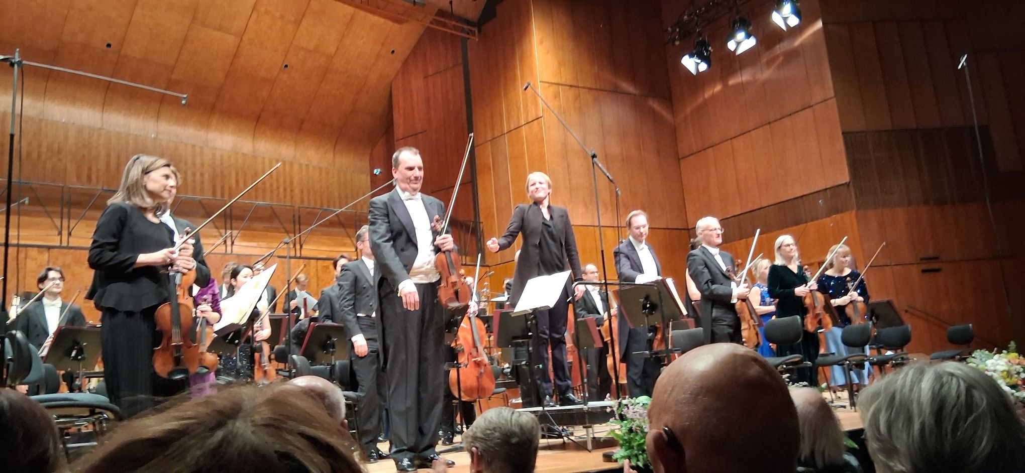 Il programma della serata, con i vari brani illustrati in maniera competente e chiarissima da Tabea Dupree, la giovane giornalista della SWR che segue regolarmente come Redakteurin i concerti dell’ orchestra, iniziava con una suite strumentale tratta da Die Dreigroschenopera, di Kurt Weill, il compositore originario di Dessau noto soprattutto per la sua lunga collaborazione con Bertolt Brecht dalla quale oltre a questo ebbero origine altri lavori come Die sieben Todsünden e Aufstieg und Fall der Stadt Mahagonny. Il clima espressivo dei lavori ideati da Weill e Brecht è quello di un’amara ironia che veicola un messaggio di critica sociale spietata. La verità amara presa di mira dai due autori era la struttura della società di quel tempo e il messaggio di base attuale ancora oggi: per fare denaro bisogna mercificare se stessi. Castigat mores ma non ridendo, nei loro lavori teatrali viene presa di mira la struttura della società capitalistica, spietata nei riguardi della donna, spesso trattata come puro oggetto di lucro e piacere, e dei piccoli borghesi cui, agli inizi del secolo, aveva già pensato Gorkij. La musica di Kurt Weill mescola lo stile orchestrale della Seconda Scuola di Vienna con elementi jazz e Ruth Reinhardt ne ha evidenziato assai bene il tono amaramente sarcastico, che ricorda irresistibilmente pagine come il Rondò-Burleske della Nona Sinfonia di Mahler. Seguiva poi il Poème op. 25 per violino e orchestra di Ernst Chausson, in cui la parte solistica era suonata da Christian Ostertag, il sessantenne Konzertmeister della SWR Symphonieorchester sin dalla fondazione del complesso, che ha messo in mostra una bel suono di timbro pieno e vibrante, oltre a un fraseggio molto intenso e ispirato. La musica evidenzia influssi stilistici provenienti da Cesar Franck e Jules Massenet, dei quali Chausson fu allievo, oltre a quelle ricche armonie cromatiche introdotte nella musica francese alla fine del XIX secolo tramite la progressiva diffusione oltralpe del repertorio wagneriano. La prima parte del programma si concludeva con una scattante e vivace esecuzione dell’ Ouverture da Prodaná nevěsta (La sposa venduta), l’ opera di Bedřich Smetana, in cui la SWR Symphonieorchester ha messo in mostra tutta la precisione di cavata e la qualità timbrica della sezione archi.