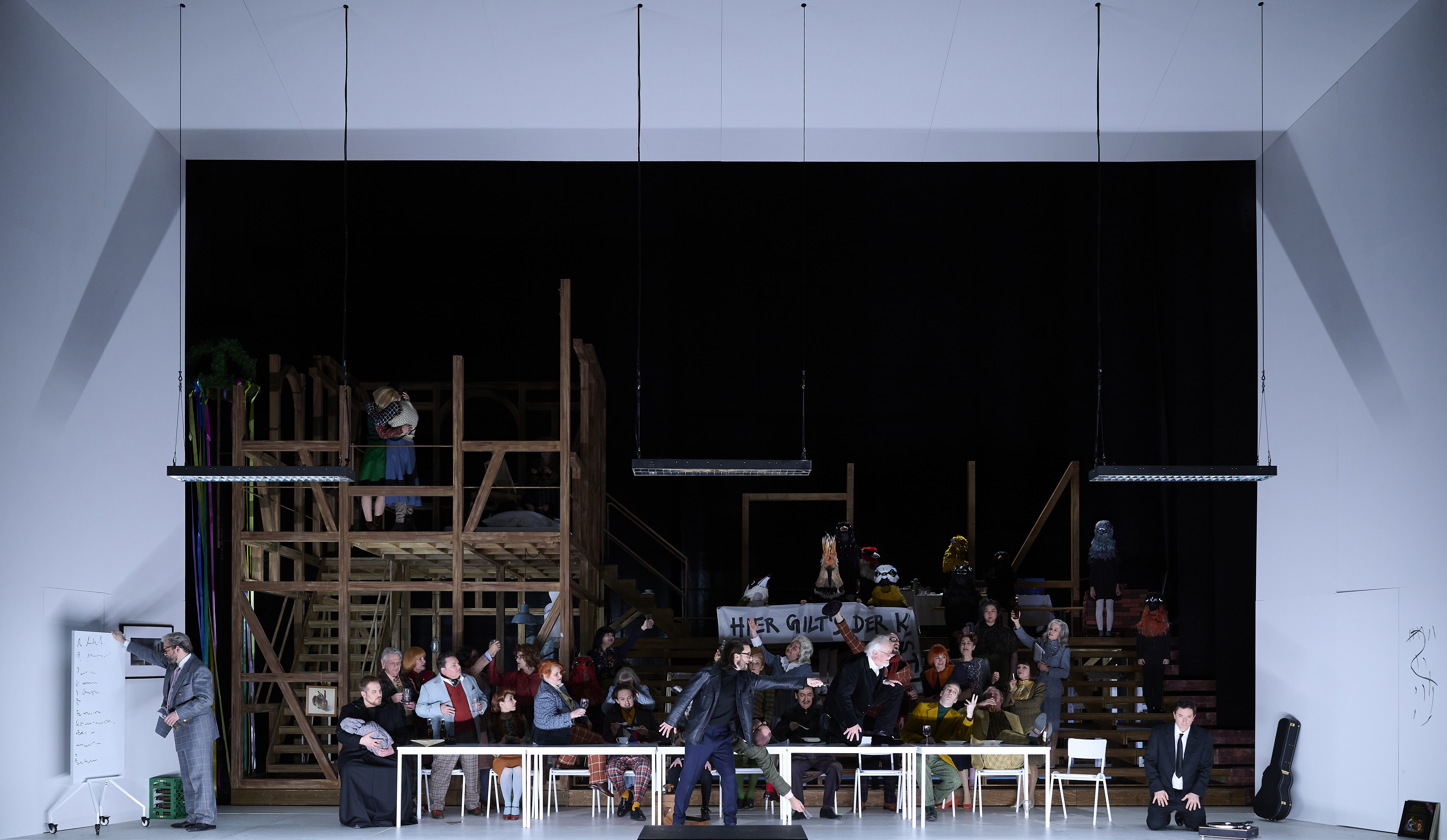 Leider wurde die Rückkehr eines der absoluten Höhepunkte der Wagner-Kunst auf die Bühne der Staatsoper durch eine Inszenierung schwer beeinträchtigt, die bereits im Grundkonzept den Charakter der Oper völlig verfälschte. Elisabeth Stöpplers Vision basierte auf der Annahme, die Meistersinger seien Hitlers Lieblingsoper, was übrigens gar nicht stimmt, da bekanntlich Rienzi und Die lustige Witwe zu seinen Lieblingsopern zählten. Stöppler hat ihr gesamtes Regiekonzept jedenfalls auf Wagners Antisemitismus gebaut, der sich in einigen seiner Schriften stärker als in seiner Musik äußerte, und auf die Instrumentalisierung von Wagners Opern durch das NS-Regime als Propagandainstrument. Die Inszenierung versäumte es – zumindest soweit ich das beurteilen kann –, Wagners Position und Interpretation der in dieser Oper dargelegten Konzepte zu beleuchten. Diese betreffen vor allem die Rolle der Kunst in der Gesellschaft und seine persönlichen Erfahrungen als Künstler im Kampf mit Konventionen und den Grenzen seiner künstlerischen Freiheit, die ihm durch die kodifizierten Regeln der Tradition auferlegt wurden. Von alldem enthüllte die Bühneninterpretation der 49-jährigen Regisseurin aus Hannover so gut wie nichts. Stöppler hingegen wollte eine feministische Neuinterpretation einbringen: Eva schrieb die Texte für Walther, Magdalena wurde als Künstlerin mit freizügigen Sexualpraktiken dargestellt, und die Lehrlinge wurden durch Frauen ersetzt, die wie MILFs aus dem Film Der Club der Teufelinnen gekleidet waren. Auch der Dirigent trägt eine Mitschuld, da er diesen Missbrauch willenlos hinnahm. Dies öffnet Tür und Tor für zukünftige Manipulationen der Partituren.