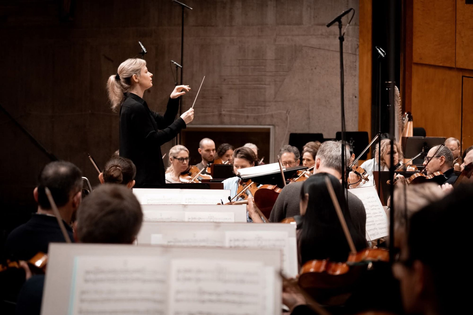 Sul podio per questo appuntamento era Gemma New, trentanovenne direttrice neozelandese vincitrice nel 2021 del Georg Solti Conducting Award che dopo incarichi da direttore ospite principale alla St. Louis Symphony Orchestra e alla Dallas Symphony Orchestra è attualmente Principal Conductor della New Zealand Symphony Orchestra. Da quello che si è ascoltato, si tratta di una musicista competente, dalla buona tecnica e dal braccio sicuro, in grado di trasmettere con precisione le sue idee agli strumentisti tramite un gesto chiaro ed efficace. Dopo l’ ottima realizzazione della parte strumentale nel Concerto di Piazzolla, Gemma New ha diretto una esecuzione davvero di livello molto pregevole della Sinfonia N°1 in re maggiore op. 25 “Sinfonia classica” di Prokofiev. La direttrice di Wellington ha offerto, in questa partitura che costituisce un omaggio dell’ autore allo stile classico rivisitato in chiave novecentesca, belle raffinatezze strumentali e fraseggi di ricercata eleganza, concludendo con una spettacolare e scattante esecuzione del Finale, perfettamente azzeccata nell’ incisività ritmica e nella graffiante scelta dei timbri, un’ interpretazione davvero ammirevole per maturità e organicità di impostazione complessiva. La SWR Symphonieorchester ha assecondato molto bene le indicazioni del podio, suonando con precisione e ottima qualità timbrica in una prestazione davvero impeccabile dal punto di vista del virtuosismo strumentale. Il concerto è decisamente piaciuto al pubblico della Liederhalle, che alla fine ha applaudito a lungo l’ orchestra e la direttrice.